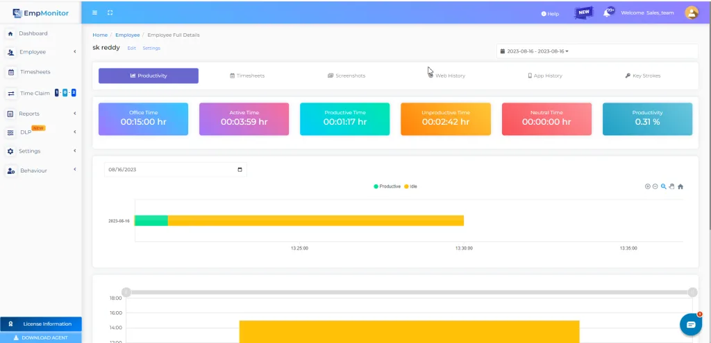EmpMonitor doesn’t just tell you how many hours someone spent logged into their computer. It also tells you how that time was utilized, and most importantly how productive it was.